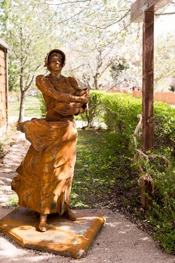 5 statues at Iron Springs Resort in Cedar City, UT. Depicting the people who settled Iron County - Native Warrior, Spanish Monk, Pioneer Woman, Iron Miner, and a Sheepherder.