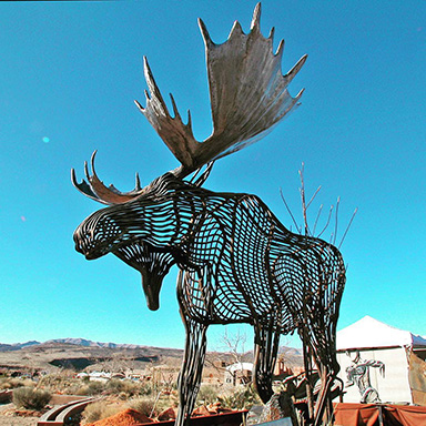 Moose in contour lines. 11 ft tall, 3/4 inch solid round rod. Fabricated metal sculpture.